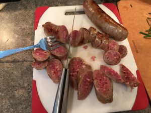 Cut up the sausage into pieces