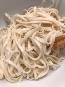 Put the noodles on the bowl.