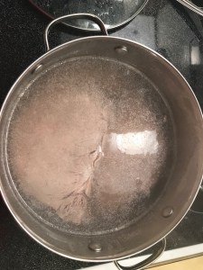 Boil it in a pot. Add the beef and once beef changes color like this, dump the water.