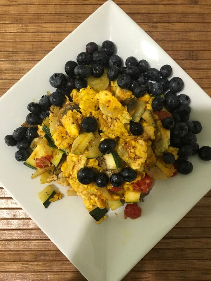 - Continue to stir the veggies on one side while you scramble eggs. Once eggs are cooked, then stir it together with the veggies.