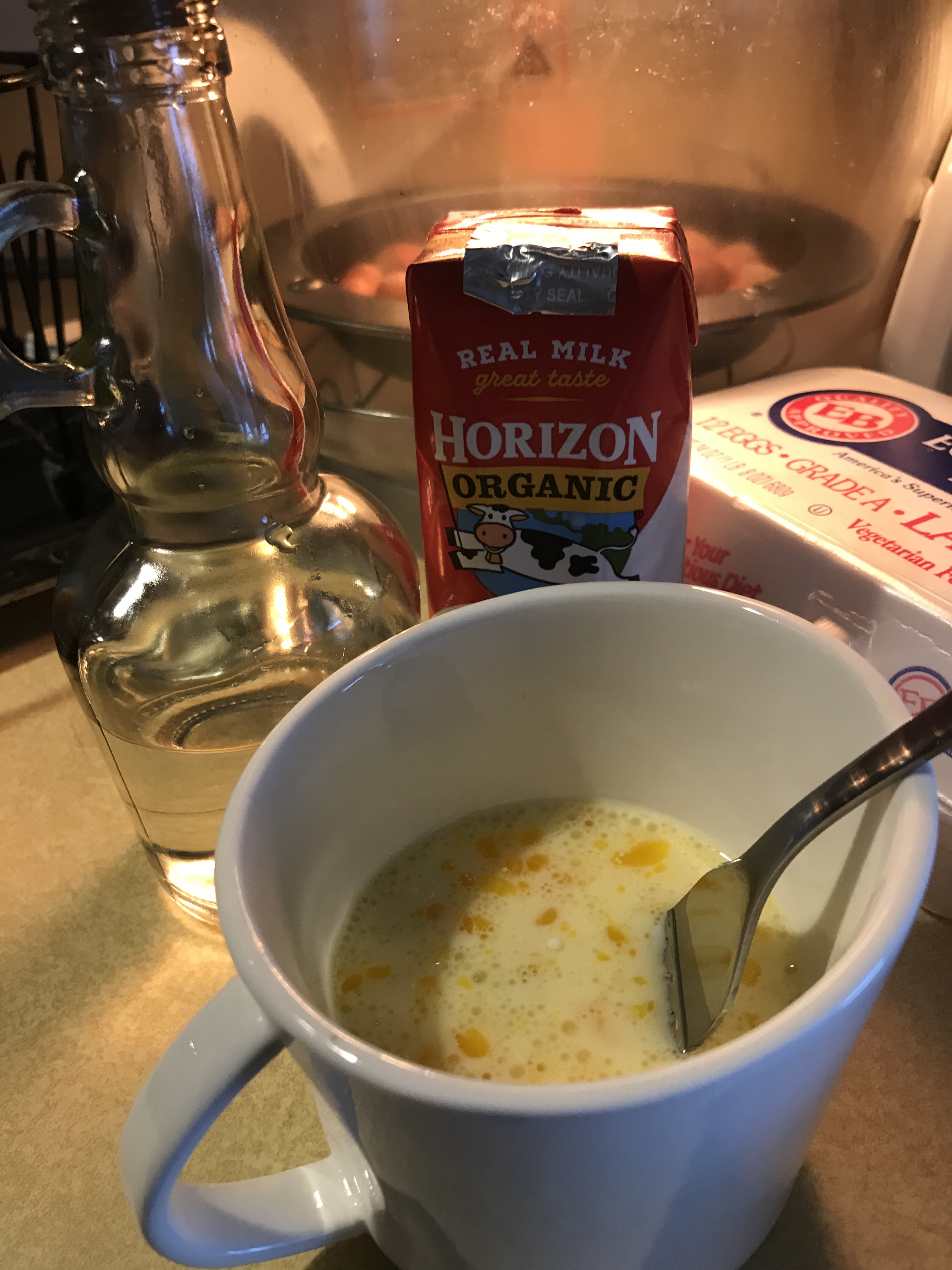 - Combine liquid items first–one egg, milk, oil and mix well.