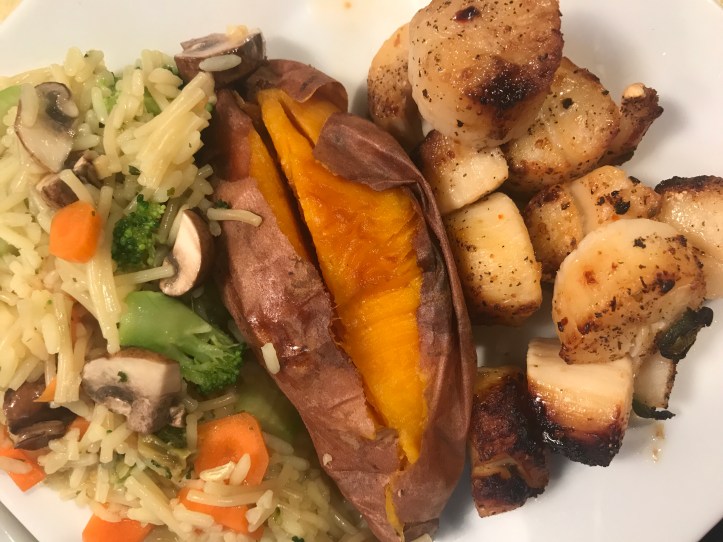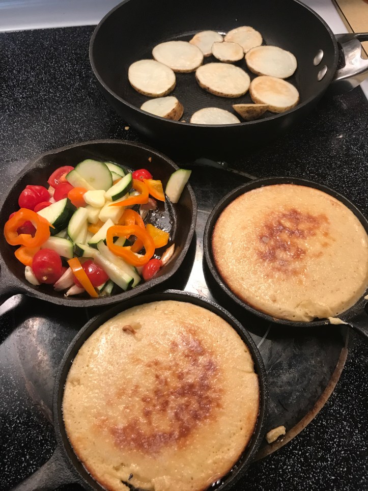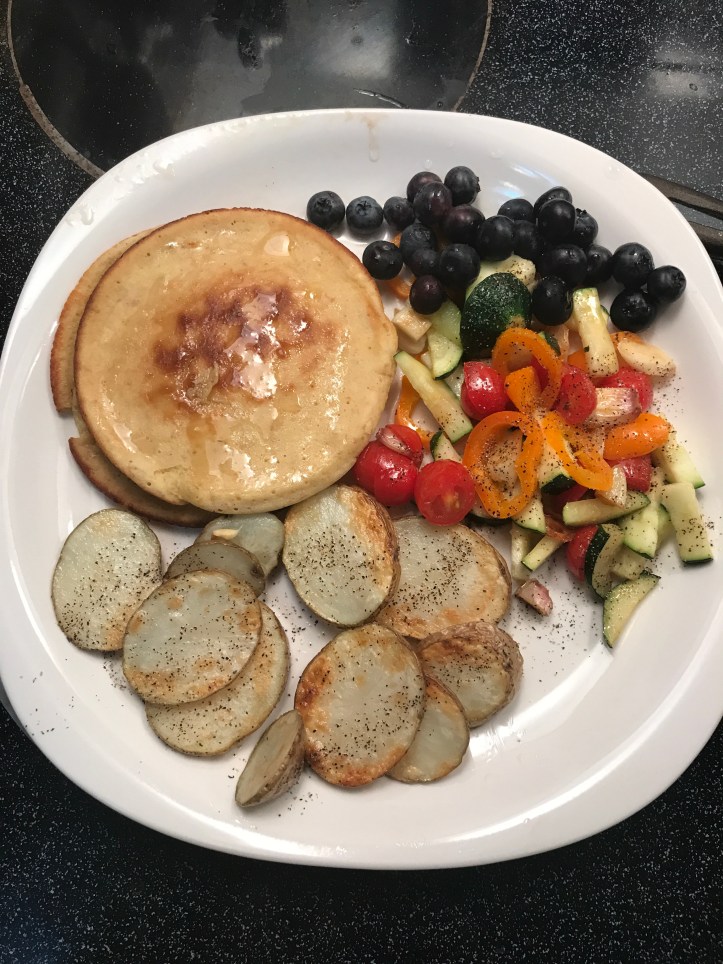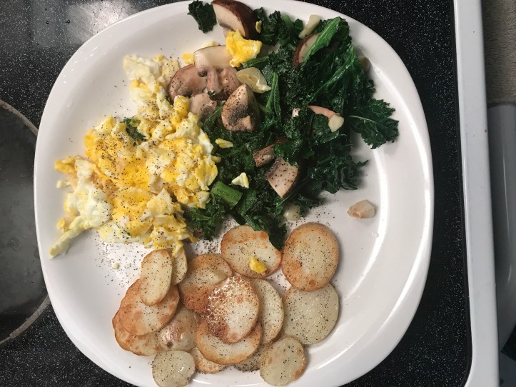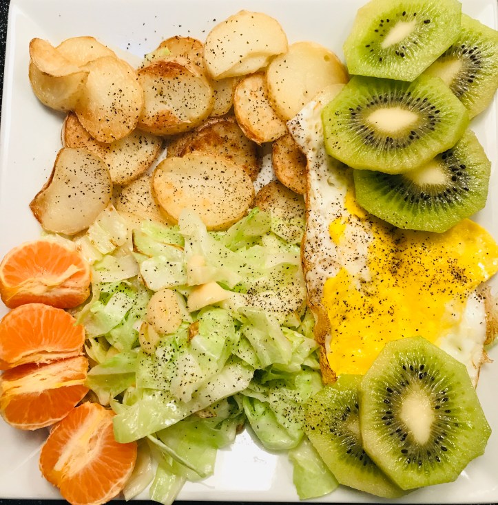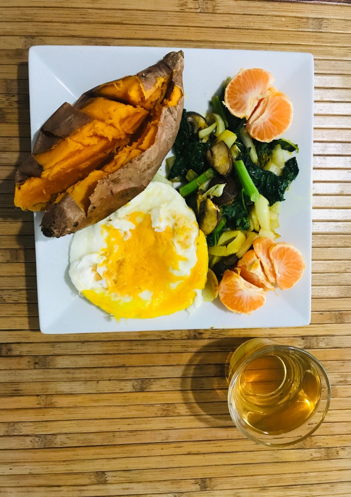 - Some carbohydrates: baked or pan-fried potatoes or sweet potatoes or porridge or cooked rice
