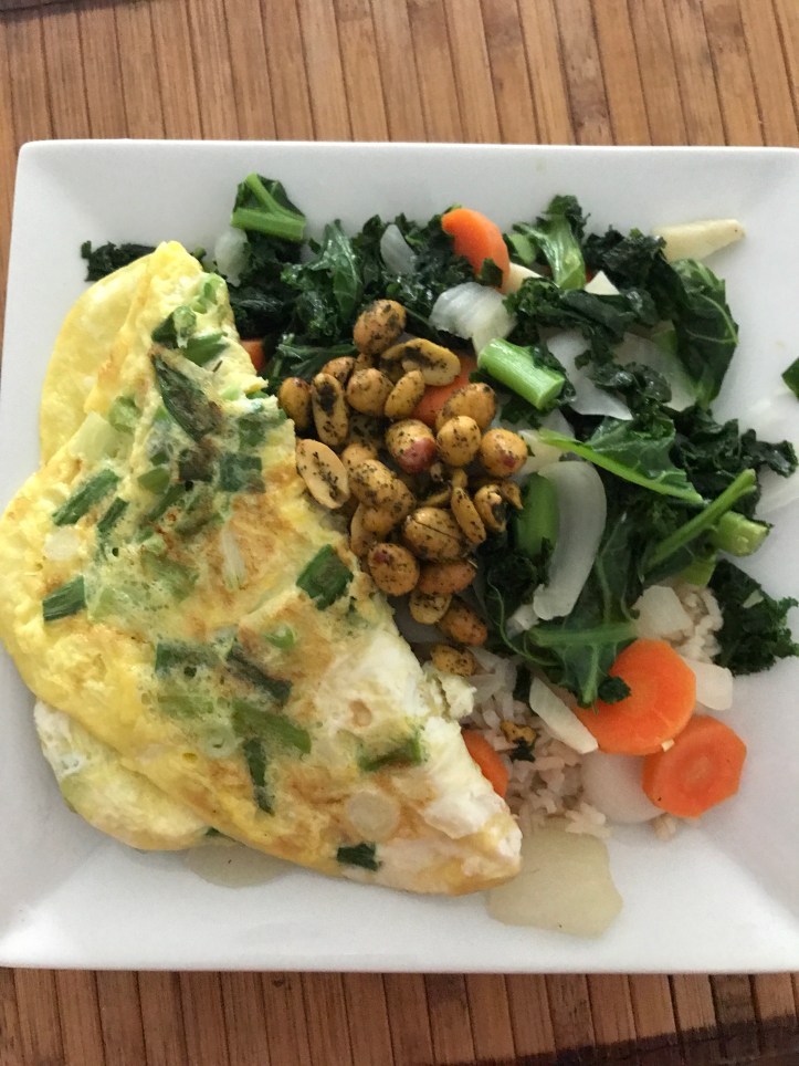 I ate the following meal with brown rice and some flavored peanuts.