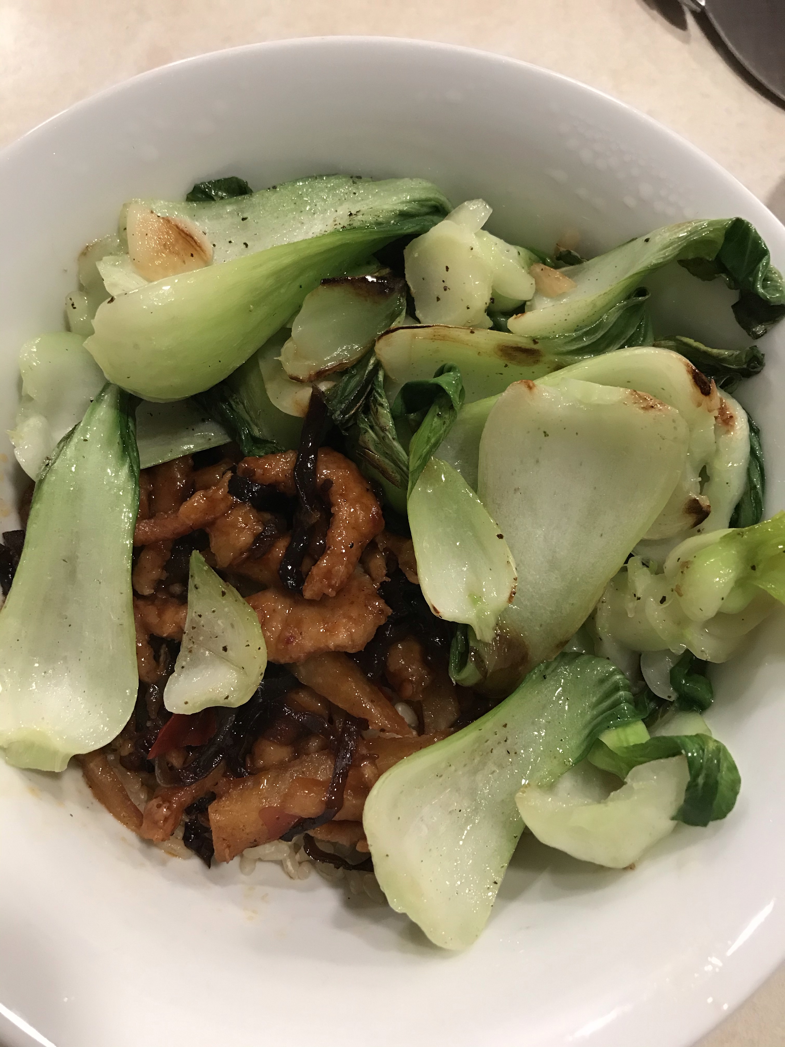 - 4 to 5 bok choy, breaking them up as seen in the dish.