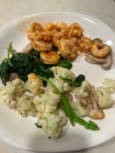 Season the veggies and shrimps or other roasted chicken pieces with salt, pepper, garlic.