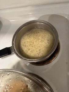 The porridge: 1/2 cup millet and one table spoonful of chia seeds and enough water to make a porridge. I just boiled them and then simmered for about 15 to 20 min.