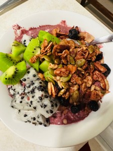 Tasty! You can eat it for breakfast or when you want to add some good fruits, nuts and seeds and fermented probiotic food into your diet!!