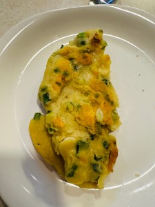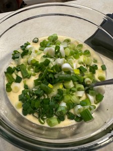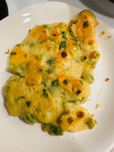 Based on the above video I made this gluten free onion cake! It is still tasty to eat it. If you like you can add an egg and place the cooked onion cake over the cooked pan fried egg and a piece of cheese in between.