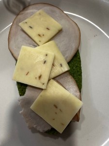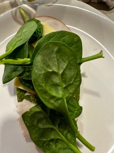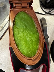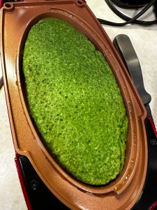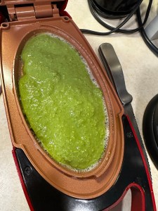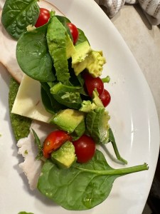 Grease the hot panAdd the mixture and close the lid and cook one side until it firms up. You can also just make it over the hot pan over the stove.Flip to the other side and close the lid and cook it until it is firm.Layer the Turkey and cheese. Add spinach. Add cherry tomatoes and avocado.