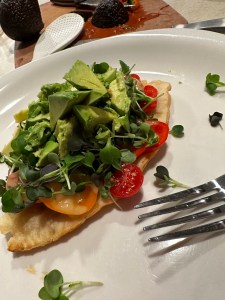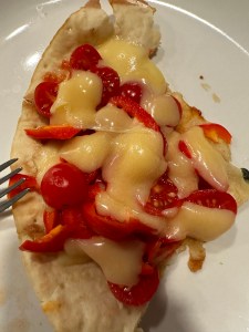 —Cauliflower pizza crust (I divided them into four pieces and use two of them for my dinner)