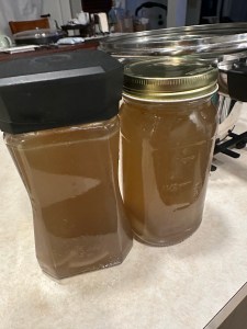 This is what the chicken stock looks like after simmering for 45 min. Take the chicken out and put them into a container of water with ice cubes and keep the broth only to make soup and hainan chicken rice.With five drumsticks I made about 6 cups of chicken broth. Discard all the seasoning ingredients.