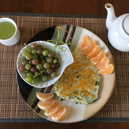 Omelette with cheese, tomato, mushroom, and onion